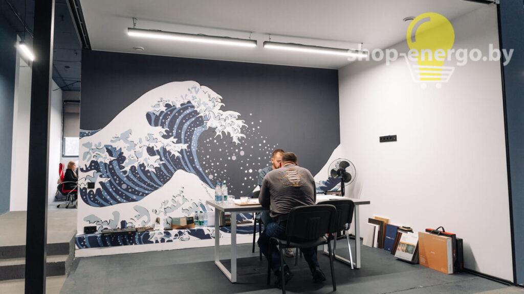 А если еще и стоит задача добиться такого эффекта простыми решениями? Легко! Представляем офис студии дизайна. Прекрасный пример того, как минимальными усилиями и вложениями сделать офис функциональным, светлым и запоминающимся. Легкие световые линии светильников Trade Linear 65х60 осветили Open Space и кабинки «творческого уединения» и места для совместных созидательных штурмов с клиентом.